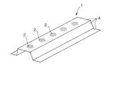 図1に示すプレス部品1は、断面がハット形状をなしており、例えば、図20に示す自動車の車体構造において、エンジンコンパートメントを形成するサイドメンバSM、車室を形成するピラーPR、或いは、サイドシルアウターSO等に適用される。これらのパネル部品は、その剛性を向上させることで車体の剛性向上に比較的大きく寄与する。