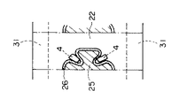 符号52は、シール部25,26形成後のシート22とシート31との重合部を、シート22の巾方向両端部にて挟む金型である。そして、上記重合部を金型52にて上下から挟むことにより、上記重合部に、図8中符号27で示すようなシール部が袋体1の巾と同一ピッチで形成され、シート22の巾方向両端部がシート31により閉鎖される。
