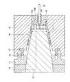 また、前記金型装置は固定金型24及び可動金型23から成り、型締装置によって前記可動金型23を進退させ、前記固定金型24に対して接離させることによって、型開閉、すなわち、型閉、型締及び型開を行うことができるようになっている。そして、前記型締装置は、固定金型24を保持する固定プラテン22及び可動金型23を保持する可動プラテン21を有し、該可動プラテン21を進退させる油圧シリンダ装置11を駆動することによって作動させられる。