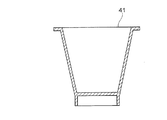 本実施の形態において、成形される成形品はいかなる形状のものであってもよいが、樹脂成形方法、樹脂成形用金型及び樹脂成形機は、図5及び6に示されるように、立体的な形状を有し側壁が薄肉化された深底凹状の容器のような形状を有する成形品41の成形に適用することができる点に特徴を有するものである。したがって、ここでは、立体的な形状を有し側壁が薄肉化された深底凹状の容器のような形状を有する成形品を成形する場合について説明する。