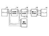 スキャナ13は、図示しない所定位置に載置された原稿、又は図示しないADF(オート・ドキュメント・フィーダ)などで送られる複数枚の原稿から画像を読取り、R(赤)G(緑)B(青)色のRGB信号を生成し、色変換処理部14にRGB信号を入力する(入力手段)。なお、スキャナ13については一般的なものであるため、詳細な説明は省略する。