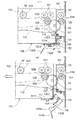 図5に示すように、前記ループ形成部Q2は、中央位置に3つの従動ローラ30を有したターンローラ31を備えると共に、このターンローラ31を基準にして搬送上手側の第1ループ形成機構L1と、ターンローラ31を基準にして搬送下手側の第2ループ形成機構L2と、これらの下方位置において被記録媒体Mを受け止めるケース44とを備えて構成されている。