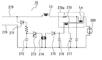 - 前記電流経路にはさらに、ノイズを除去するためのインダクター、前記ランプの駆動時に電力を蓄積可能なインダクター、および共振用インダクターの少なくとも1つが接続される、請求項1に記載のランプ点灯装置。
