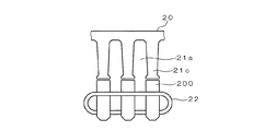 図7は、固定子巻線挿入の具体例を示す図である。図7に示すように、巻線配置工程(巻線挿入工程)におけるスロット21aへの固定子巻線22の挿入は、ティース部21cの先端部から延伸する挿入ガイド200に沿って行われる。この挿入ガイド200は、固定子巻線22を帯状にあらかじめ成形する際に用いられる成形ガイドがそのまま用いられる。