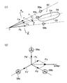 すなわち、図4(1)に示したように、各推進器56a〜56cが機体22に与える推力のベクトルをFa、Fb、Fcとし、各推力の機体22の軸線58と直交した方向の成分のベクトルをFa′Fb′Fc′とすると、