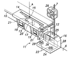 他方、床板3と固定壁4との間の段部6の上面には、上記可動部材12の前後一対のガイド壁17・18間に係合し得る固定部材16がビス23をもって固定されている。この固定部材16は、段部6の上面に固定されるベース部24と、ベース部24の前端に立ち上げられた上面が開口する箱状部25とからなっている。箱状部25は、その前後方向厚さが可動部材12の前後一対のガイド壁17・18間の寸法と略等しくされており、その前後面の中央には、V字溝26が垂直方向に延設され、その内側の左右方向中央の底面には、垂直方向の突片27が形成され、その左右両外端部には、テーパ状に先細りになったガイド部28が形成されている。