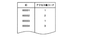 ユーザアクセス権情報記憶部32は、例えばハードディスク記憶装置やデータベースを含んで構成される。ユーザアクセス権情報記憶部32は、入室者によって携帯される発信器16から送信される識別情報に対応づけて、その入室者のユーザアクセス権情報を記憶する。なお、ユーザアクセス権情報は、各種データの参照や編集がデータ出力装置14においてどのように許容されるかを直接的又は間接的に示す情報である。