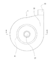 また、遠心式ポンプでは、ポンプ効率を向上させるためにボリュート(ダブルボリュートもしくはシングルボリュート)が形成される。ダブルボリュートの場合、径方向の圧力バランスが平均化され、ポンプ動作時にインペラの回転中心とポンプ室の中心とがほぼ一致し、ハウジング内壁面とインペラ外径部との隙間が全周において均一となり、ラジアル方向の耐外乱性は向上するが、ポンプシステムの小型化が難しいといった問題があった。