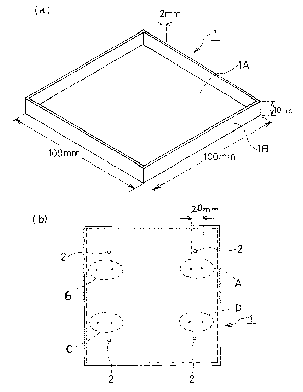 FIG. 1 (a) is a perspective view showing samples molded in Examples and Comparative Examples, and FIG. 1 (b) is a plan view of the same.