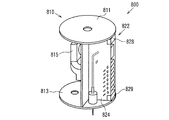 具体的には、図18、図19に示す電子増倍部822の上端と下端にそれぞれ板バネ828、829を取り付け、上側の板バネ828と下側の板バネ829をそれぞれ上部金属板811と下部金属板813の内面側に圧接させることにより、電子増倍部822をイオン検出器本体に取付けている。