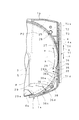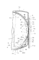 この第1の防塵構造は、インナーロータ4が図12に示す開口部開放位置P2から図11に示す開口部閉塞位置P1まで矢印b方向に回転復帰された時に、例えば、図11にG部分で示した3箇所等にて、3つのばね作用部41のばね力によってインナーロータ4の円形で垂直状の外周壁4cの3箇所に下向きの押圧力を発生させて、そのインナーロータ4の底部4bを一対のシャッタ9、10を介して下シェル3の底部3a上で、開口部5の周辺部上に上方から弾性的に密着させることによって、ダスト(塵埃)がその開口部5からディスクカートリッジ1内へ侵入するのを防止することができるようにしたものである。