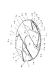 即ち、この開口部閉塞状態では、インナーロータ4の底部4bの外周部分4b′と、それより内周側の一対のシャッタ9、10とによって、下シェル3の開口部5の全域が完全に閉塞された状態となる。なお、一対のオーバーラップ用斜面9a、10aは、これらの長さ方向の中央部に形成されている矢印m方向に対して直交する直交面9b、10bを中心として上下に反転されている。そして、シャッタ開閉機構16によってオーバーラップ用斜面9a、10aが矢印m方向から重なり合わされる時に、これらの直交面9b、10bはシャッタ開閉機構16による一対のシャッタ9、10の矢印m方向に対して直交する矢印m′方向の移動成分によって相互に密着されて開口部5を完全に閉塞することになる。
