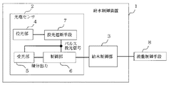 - 請求項1記載の給水制御装置において、制御部は第1の積分値を計測しパルス投光動作毎に、更新記憶することを特徴とする給水制御装置。