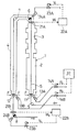 以下図1〜図3に示す第1例により、請求項1記載の発明の実施の形態を説明する。図1において1は、ステンレス鋼帯から成るストリップSをN2雰囲気中で光輝焼鈍する竪型の連続熱処理炉で、2はその加熱帯、3は冷却帯、4は保護筒である。ストリップSは、炉外の転向ロール5、炉内のステアリングロール6と転向ロール7、炉外のステアリングロール8に、順次巻掛けられて走行する。
