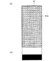 図5において、61は、正面図(a)及び側面図(b)に示されるように、例えば、長さ90[mm]、幅70[mm]、厚さ7[mm]程度の直方体形状で、ハニカム状に形成された多数の孔61aを有するするフィルタ本体である。該フィルタ本体61は、活性炭、常温酸化触媒及び光酸化触媒を混練した混練物を押出成形し、所定の厚さにスライスして得られる直方体形状のハニカム体を乾燥させたものであり、黒色である。