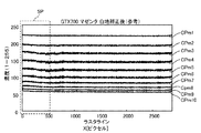 このような修正を行うことにより、設定用濃度データは、スキャナ装置100(読み取りキャリッジ104)の読み取りムラの影響が抑えられる。ここで、図26は、設定用濃度データをサブパターンCPm1〜CPm10毎に示した図である。この図において、縦軸や横軸の設定は図25と同様である。この図26から解るように、修正比率に基づく修正を行ったことで、1番目のラスタラインから500番目前後のラスタライン、すなわち、図25及び図26に符号SPで示す範囲について、スキャナ装置100の読み取りムラが改善されている。すなわち、本来の濃度よりも濃く読み取られる現象(図25Aにおいて左下がりの特性)が改善されている。特に、濃度10%〜50%のサブパターンCPm1〜CPm5について、読み取りムラが改善されている。