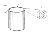 また、前記金属円筒は、基板表面に微細な凹凸を形成した後、該基板表面の凹凸形状を、可撓性を有するフィルムの表面に転写させ、ついで前記フィルムを、凹凸が転写された面を内側に向けて円筒形状に撓ませて保持した状態で、該フィルムの円筒内周面にめっき処理を施し、ついで前記フィルムをはずすことにより得られるめっき部分であることが好適である。 The metal cylinder is formed with fine irregularities on the surface of the substrate, and then the irregular shape of the substrate surface is transferred to the surface of a flexible film, and then the surface on which the irregularities are transferred is transferred to the film. It is preferable that the plated portion is obtained by plating the cylindrical inner peripheral surface of the film in a state of being bent and held in a cylindrical shape toward the inside, and then removing the film.