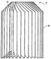 流れが間隙37を通過する過程において、分離されるべき粒状物質は、半径方向の遠心力成分の作用により、外側に向かう略半径方向の流路に沿って間隙を通過し、隣接するベーン間の間隙を通り抜ける。この粒状物質は、実際には、上述した米国特許第5,575,912号及び米国特許第5,637,217号の円錐形分離板の積重体を含む組立体の形状の場合におけるのと同様に、流れを遡る方向に向けて流れる。液体の流れから分離されるべき粒状物質を構成する粒子が、いったん、対応するベーンの凹型の内側螺旋状面に到着すると(図5参照)、流体の境界層における流れ速度の不存在により、これらの粒子は半径方向外方に移動していく。この半径方向外方の経路は、スラッジ捕集部分すなわち静止領域50に向かうものである。粒子は、その後、螺旋状ベーンの周方向に不連続な乱流防止部(すなわち分離間隙59)の間に形成された軸方向に連続するスリットを通って、螺旋状ベーンのモジュールから「脱落する」。上述したように、乱流防止部の機能は、間隙37内で生ずる流れとスラッジの捕集領域(静止領域50)との間の流体の相互作用を減少させることである。なお、スラッジ捕集領域を「静止領域」と称しているが、この用語は、好ましい状態を表わすものに過ぎない。理想的には、このスラッジ捕集領域50は、完全に静止しており、その結果、実質的に乱流が存在せず、いかなる粒状物質も液体の流れ中に再混入する恐れがないようにするのがよい。本実施形態では、乱流防止部58は、頂面側から見て、円形の輪郭を形作るように構成されている。しかしながら、本発明においては、これらの各乱流防止部58は、外側に向けてわずかに傾かせ、これにより、各乱流防止部の内面に集められるであろう粒状物質も捕集領域に「滑り出す」ことができるようにしてもよい。各螺旋状ベーンの湾曲部分の位置には、隅部が形成されるので、一部の粒状物質がその隅部内に蓄積しがちとなる。乱流防止部を傾かせることにより、この隅部を広げ、集められた粒状物質がスラッジ捕集領域(静止領域50)内に滑り出やすくすることができる。この代替的な乱流防止部部分の形状は、図5に破線で示されている。