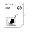図47は、手書きコマンドが記入され、動作内容が電子透かしで埋め込まれた原稿の一例を示した図である。図47に示される原稿51は、テキスト領域52と、画像領域53と、を含み、更に、手書きコマンド421が記入され、電子透かし動作内容471が埋め込まれている。図4等には図示していないが、表示装置23は、その機能として、印刷を行う印刷部等を有し、例えば図47に示されるような原稿51を印刷、出力するようにしてもよい。又は画像形成装置22に印刷すべきデータを出力してもよい。