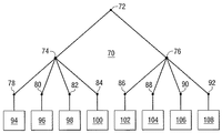 他の例では、MACの均衡ツリー(a balanced tree of MACs)を利用する。この例では、複数のデータ・ブロック・セットについて複数の第1のMACが計算され、第1のMACのグループについて複数の追加のMACが計算される。次に、第1のMACおよび追加のMACが互いにツリー構造に編成される。図5は、こうしたツリー構造70の概略図である。ツリーは、階層構造に配置構成された、複数のノード72、74、76、78、80、82、84、86、88、90、および92を含む。この例では、ノード72がルート・ノードであり、ノード74および76はルート・ノードの子である。ノード78、80、82、および84はノード74の子であり、ノード86、88、90、および92はノード76の子である。図5は、4つの第1のMACのグループについて、ノード74および76でMACが計算される例を示すが、異なる数の第1のMACを使用して追加のMACを計算することが可能である。