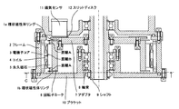 また、固定子と回転子との相対的な速度及び位置を検出する手段として、固定子側に磁気センサ11が配置されるとともに、回転子側に前記磁気センサ11と所定のギャップを介して対向する位置に前記ギャップ及び回転方向と垂直なスリットが回転方向に所定の等間隔で設けられている磁性体からなるスリットディスク12が配置される。