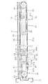 図3に示されているように、第1及び第2扉体21,22が全開位置に達した時には、第1扉体21の全部又は略全部は図1で説明した戸袋3の内部に収納されているとともに、第2扉体22の大部分は第1扉体21の内部に侵入し、さらに、この第2扉体22の戸尻側の端部は、第1扉体21の内部を貫通してこの第1扉体21の戸尻側の端部から突出している。