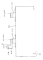 また、図7及び図9で示されているように、第2扉体22の厚さは第1扉体21の厚さよりも小さく、そして、第1扉体21の内部は、前記上面部21Aの下面から前記第1及び第2垂下部21B,21Cの下部まで達する空洞部となっており、この空洞部に、開口した端面となっている第1扉体21の戸先側の端面から第2扉体22が出入り可能となっている。すなわち、第1扉体21と開閉移動方向が同じになっている第2扉体22は、第1扉体21の内部に出没可能な入れ子式となっている。なお、第1扉体21の戸尻側の端面も開口した端面となっており、このため、第2扉体22は第1扉体21の内部を貫通可能となっている。