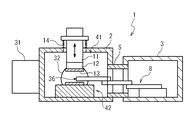 接合チャンバー2は、図2に示されているように、さらに、上側基板支持部41と下側基板支持部42とを内部に備えている。上側基板支持部41は、上側ステージ11と角度調整機構12と上側試料台13と上側ステージ駆動装置14とを備えている。上側ステージ11は、接合チャンバー2に対して鉛直方向に平行移動可能に支持されている。角度調整機構12は、向きを変更可能に、上側試料台13を上側ステージ11に支持している。上側試料台13は、その下端に誘電層を備え、その誘電層と基板の間に電圧を印加し、静電力によってその基板をその誘電層に吸着する。上側ステージ駆動装置14は、ユーザの操作により、上側ステージ11を接合チャンバー2に対して鉛直方向に平行移動させる。下側基板支持部42は、基板を上端に支持する。