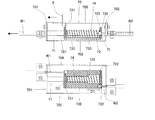 前記作動手段は、第1方向及び第2方向に移動可能な第1作動体及び第2作動体と、前記第1作動体と前記第2作動体との間に介装されたバネ部材と、からなり、前記第2作動体は前記第1作動体に対して第2方向へ移動可能であり、前記バネ部材の第1方向側端部は前記第2作動体に当接し、前記バネ部材の第2方向側端部は前記第1作動体に当接しており、