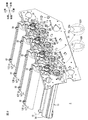 直動カム45は、本体ケーシング2において、前後方向に直線移動できるように支持されており、図示しないリンク機構により、トップカバー34と連動されている。すなわち、トップカバー34が閉鎖されると、図4に示すように、後方へ直線移動し、トップカバー34が開放されると、図3に示すように、前方へ直線移動する。