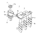 次に、前記回路遮断器(MMS)の構成概要を図4,図5に示す。まず、図4(a),(b)において、1はモールド樹脂ケースからなる回路遮断器の本体ケース、1aはケースカバー、2,3は本体ケース1の両端に設けられた電源側,負荷側端子、4は主回路の接点部を開閉操作する開閉機構部、5は開閉機構部4を開閉操作するハンドル(ロッカー式)、6は主回路の短絡電流を検出して回路遮断器を瞬時にトリップさせる電磁形過負荷引外し装置、7は過負荷,欠相を検出して回路遮断器をトリップさせる熱動形過負荷引外し装置である。なお、図示してないが主回路の接点部は本体ケース1の底部側に組み込まれている。