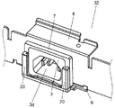 なお、図5では、ビスを2つ用いて、上側挟み込み金具8と下側挟み込み金具9とを本体取り付け具7の両脇近傍部にてビス示して固定する方法を示した。しかし、ビスは片側の1個とし、他方は、かしめや嵌め込みを用いてもよい。また、ビスの代わりにスポット溶接を用いてもよい。