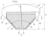 透明外フィルム(2)の湾曲縁(23)の溶着部と円錐状飯塊(5)の拡大端面との間には部屋空間(6)が存在している、包装円錐状飯。 - 円錐状飯塊(5)には、部屋空間(6)に突出して具(7)が配備されており、透明外フィルム(2)を透して具(7)が見える、請求項1に記載の包装円錐状飯。