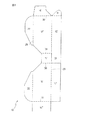 - 平らな第一ブランク(18)は二本の長手折り曲げ線(24)と多数の横断折り曲げ線(25)とを有していて、前記横断折り曲げ線(25)は前記上端面(8)の一部を形成する第一パネル(8' )と;一方の大きな側面(6)を形成する第二パネル(6' )と;前記下端面(9)を形成する第三パネル(9' )と;他方の大きな側面(6)を形成する第四パネル(6' )と;残りの前記上端面(8)を形成する第五パネル(8'')とを前記二つの長手折り曲げ線(24)の間に画成しており;