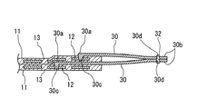第1変形例では、導電ピン30の構成を第1実施形態と相違させている。即ち、図5に示すように、導電ピン30の一端30aに導電ピン30の長さ方向と直交する方向に突出する一対の突き刺しピン30cを設け、他端30bには、ジョイントピン32を挿入するためのピン孔30dを設けている。