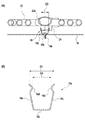 図7(A)、(B)に示すように、特許文献1に記載の蛍光ランプ100は、管状の放電路が長手方向中央部101aを中心として略同一平面に沿って2重渦巻状に旋回された発光管101を有しており、裏面(発光面と反対側)において中央部101aを通って発光管101の両端部101b、101bを連結するブリッジ102が設けられている。また、ブリッジ102の中央部には、裏側に突出して口金103が設けられており、口金103の中央には、ランプピン104が設けられている。