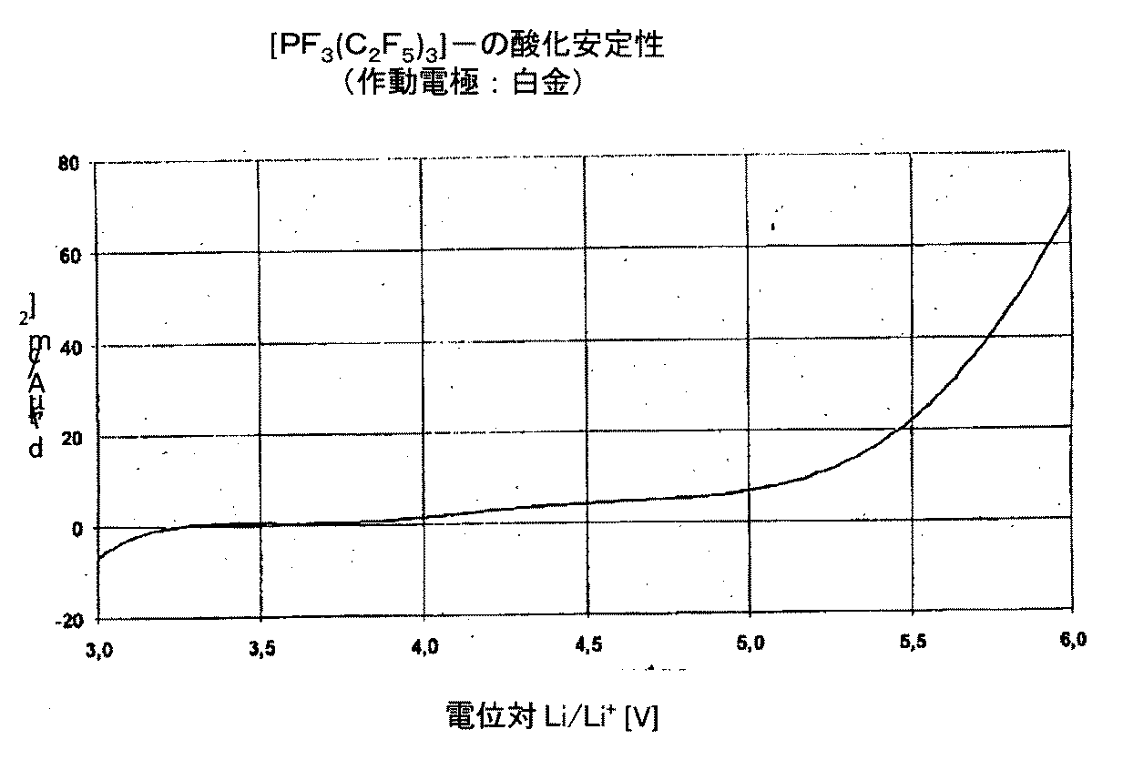 リチウムイオン電池及び非常に大きな容量を有する二重層コンデンサ(いわゆるスーパーコンデンサ又はウルトラコンデンサ)が現在のこの技術分野の水準を代表している。これら両系において導電性塩として LiPF6 又は N(C2H5)4BF4 の形の加水分解を受け易くかつ熱的に不安定な物質が一般に用いられている。湿った空気との接触又は溶媒からの残留水分との接触に際して HF が急速に形成される。HF はその有毒な性質に加えて、サイクル挙動、また従って電池の電気化学的性能に非常に大きな悪影響を有する。これまでに提供されている代替物はビス(トリフルオロメチルスルホニル)イミド又はビス(ペンタフルオロエチルスルホニル)イミドのようなイミド類、或いは、例えばトリス(トリフルオロメチルスルホニル)メタニド及びその誘導体のようなメタニド類である。これらの塩は高い正電極安定性を有し、そして種々の有機非プロトン溶媒と共に伝導性の高い溶液を形成する。しかしながら、これらのイミド類は、それらが種々の電池において負電極電流コレクタとして作用するアルミニウム金属を充分に不働体化しないと言う欠点を有する。これに対して、メタニド類は非常に大きな労作のもとでしか製造し、精製することができない(Turowsky, Seppelt: Inorg. Chem., 1988, 2135) 。加えて、アルミニウムの酸化に対する安定性及び不働体化のような電気化学的性質はそのメタニドの純度に非常に大きく依存する。