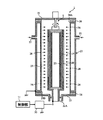 一方、円筒状電極20と基体支持体24との間には、直流電源30を介して直流電圧を印加する。直流電圧は、電圧値を一定としてもよいし、パルス状の電圧を繰り返し供給することにより行なってもよい。このような直流電圧の供給状態は、制御部31により直流電源30のオン・オフを制御することにより達成することができる。このとき、加熱体25による内周面からの円筒状基体10の加熱を停止してもよい。すなわち、加熱体25は、成膜前における予備加熱のためにだけ利用してもよい。