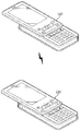 図3は、本発明の第2の実施例による動作感覚フィードバックを利用した相互作用装置の斜視図を示したものである。本発明の第2の実施例による相互作用装置100及び相互作用装置200は、スライド型携帯用端末機120及びスライド型携帯用端末機220を使用する。このような第2の実施例による相互作用装置100及び相互作用装置200の構成は、図1に示すように、第1の実施例と類似した構成からなる。しかし、スライド型携帯用端末機120及びスライド型携帯用端末機220は、折り畳み型携帯用端末機110及び携帯用端末機210の運動とは異なる運動をするから、これに対応する構成からなる。
