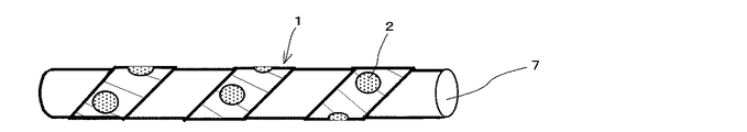 また、シールを無作為多量に貼る作業がテープを巻くだけの作業となることから、作業効率の向上にもつながる。巻きつけて、長さを稼いで貼り付けて用いることができるために、視認部位を複数個所にして視認しやすくすることができるために有効である。