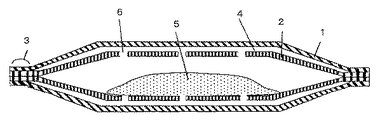 なお、本発明において空隙とは外包材1と内包材2との間に空気が滞留しうる空間が存在することを意味し、外包材1と内包材2とが部分的に接着されたものであっても、空気が滞留しうるものは本発明の範囲に属する。