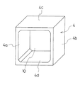 コンクリート函体4は鉄筋コンクリート製で、図4に示すように左側板4a、右側板4bと上床板4cと下床板4dとからなる一体のもので、前後面が開口10として開放されている。