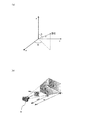 次に、画像回転手段15は、回転指示手段25により、表示手段41を介して、回転コマンドが入力されたか否かを判断する(ステップS11)。回転指示手段25により回転コマンドが入力されたと判断すると、画像回転手段15は、分解斜視表示された画像を注視点に対して回転させる(ステップS12)。この画像の回転処理は、視点を注視点に向けたまま注視点に対して旋回させる処理と捉えることができる。このとき、前述の注視点を原点とした画像3次元座標において、旋回の軸は、図8(a)に示すように、各x、y、z軸とすることができることは無論、任意のx軸成分、y軸成分、z軸成分により決定される任意のベクトルの方向とすることができる。この旋回軸を連続的に変化させれば、図8(b)に示すように、注視点から距離rにある視点は、半径rの球面上をくまなく移動できることとなる。