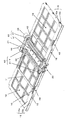 図7は、第一フィルター10の斜視図であり、図8に図7のB−B断面図を、図9に図7のC−C断面図をそれぞれ示す。なお、第二フィルター11は、第一フィルター10と形態が同じとされている。図7に示すように、両フィルター(第一フィルター10及び第二フィルター11)は、いずれも矩形のメッシュフィルター部12と、そのメッシュフィルター部12の外周を囲むように支持する四角枠状の枠部13とを備えている。メッシュフィルター部12は、編み組織あるいは織り組織からなる合成樹脂製のフィルターの表裏面において、前記枠部13の内側で前後左右方向に差し渡された格子状の補強部14が設けられ、この補強部14によってフィルターが補強されている。