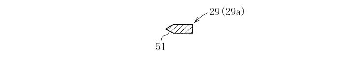 この場合、ハンマー部材29(第1ハンマー部材29a)は、図6から図8に示すように、基端縁に凹部50が形成された断面扁平矩形の棒状体からなり、その一方の長辺の先端側に刃部(粉砕刃)52が形成されている。また、凹部50の近傍には貫通孔53が設けられている。