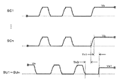 続く書込み期間では、維持電極SU1〜SUnに電圧Ve2を、走査電極SC1〜SCnに電圧Vcを印加する。 In the subsequent address period, voltage Ve2 is applied to sustain electrodes SU1 to SUn, and voltage Vc is applied to scan electrodes SC1 to SCn.