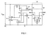 該コンデンサは、前記の第1電子スイッチ(S1)と第2電子スイッチ(S2)との間の中間点(BM1)と、前記の給電端子との間に接続されている、