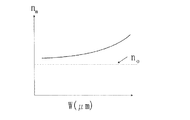 図14には高周波電気信号のマイクロ波の等価屈折率nmとCPWのギャップWとの関係を示す。図には相互作用光導波路3a、3bを伝搬する光の等価屈折率no(no≒2.2)も示している。