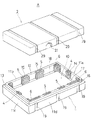 この搬送用容器Aは、図1に示すように、上方に開口し、収納対象のガラス基板等の板状体Bを、各板状体間にスペーサー用の保護シートCを介して重ねて収納できる平面矩形の容器本体1と、該容器本体1の開口部1aに被着される蓋体2とからなる。