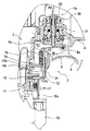 打ち込み部3の先端には、コンタクトアーム10の先端部10aが配置されている。先端部10aは円環形状を有しており、打ち込み部3をその内周側に位置させた状態に配置されている。この先端部10aは、打ち込み部3の先端から僅かに突き出している。この先端部10aから延長部10bが一体に設けられている。延長部10bは屈曲しながら上方へ延びており、その上端部に突き当て部10cが一体に設けられている。この突き当て部10cは、スイッチレバー6の下方に位置している。コンタクトアーム10、スイッチレバー6及びその周辺を含む動作制御機構Cの詳細が図2以下に示されている。